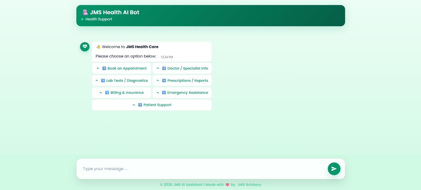 The Healthcare AI Chatbot acts as a digital patient support layer, managing routine conversations that occur across hospital websites, portals, and messaging channels. From answering general patient questions to guiding appointment requests, the chatbot ensures that individuals receive timely assistance without waiting for staff availability.