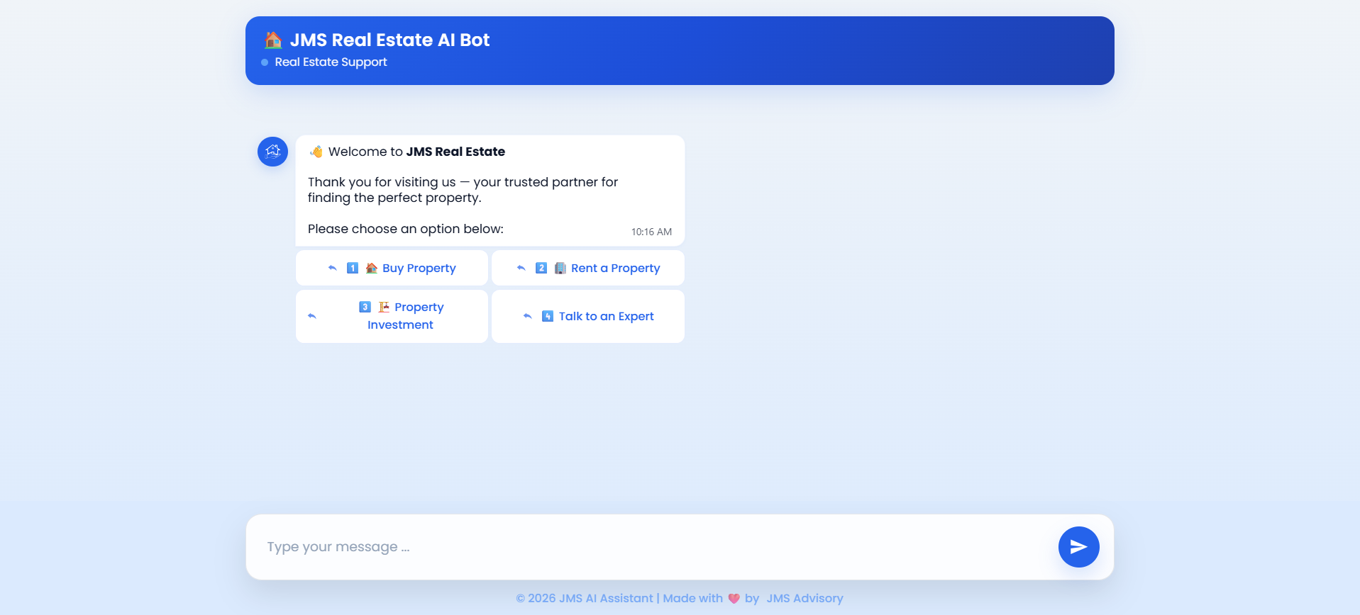 Property decisions often begin with multiple enquiries, pricing, availability, amenities, and location details. Managing these conversations manually can lead to delayed responses and fragmented communication. The Real Estate AI Chatbot introduces structured conversational support, enabling prospects to explore property information conveniently while organizations maintain consistent engagement.